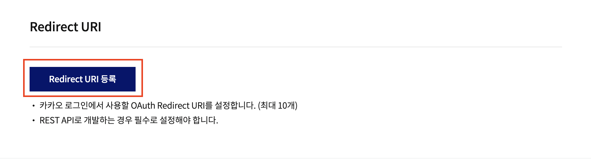 카카오 로그인 활성화 설정 화면에서 아래로 스크롤 하면 Redirect URI 입력 항목이 보인다.