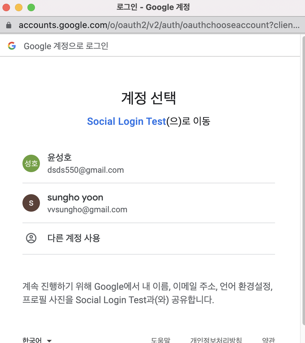로그인 처리 플로우는 아래와 같다. 인가 코드 받기 -> 토큰 받기 -> 사용자 정보 가져오기 해당 글에서는 인가 코드 받기는 클라이언트 페이지에서, 토큰 받기와 사용자 정보 가져오기는 서버에서 처리할 예정이다. 위 플로우 대로 처리되기 위해 2개의 클라이언트 페이지와 1개의 API가 필요하다. 1. 클라이언트 페이지 구글 로그인 버튼 페이지 구글 로그인 후 Redirect되는 페이지 2. 서버 클라이언트 페이지에서 전달받은 인가코드를 통해 로그인 토큰 발급 및 유저 정보를 조회하는 API 구글 인증 구현 1. 인가 코드 받기 서비스 서버가 구글 인증 서버로 인가 코드 받기를 요청한다. 여기서 얻은 인가 코드는 로그인 토큰을 얻기 위해 사용된다. 클라이언트 페이지에서 구글 로그인창이 노출되고 구글 계정으..